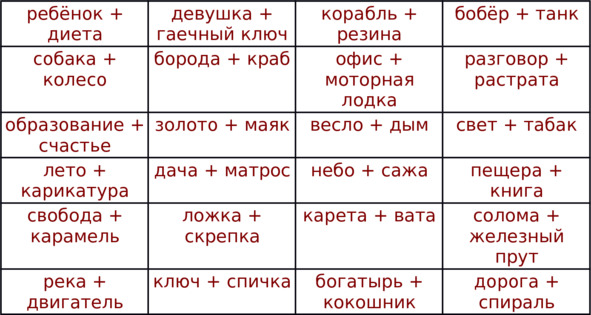 Попробуйте соединить и найти новые идеи из следующих сочетаний: