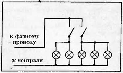 Рис. 13. Схема выключения ламп пятирожкового светильника