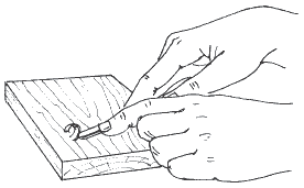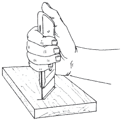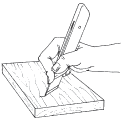 Для начинающего резчика важно научиться правильно держать инструмент. Это существенным образом влияет на качество резьбы, а также на безопасность во время работы. Для резьбы, не требующей особых усилий, нож-косяк можно держать как авторучку, так, как показано на рис. 21.